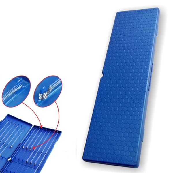 STONFO PORTAFINALI 300ย รจ un contenitore studiato per riporre e proteggere una grande quantitร di finali nelle lunghezze da cm 10 a 30 e loro multipli. Compatto e molto leggero ha 13 posizioni di fissaggio e puรฒ contenere oltre 100 finali pronti allโuso. I piolini di sostegno sono di dimensione adeguata sia nel diametro che in lunghezza per permettere di alloggiare ami ed asole di ridotta grandezza. La lunghezza del finale รจ chiaramente indicata allโinterno del contenitore.