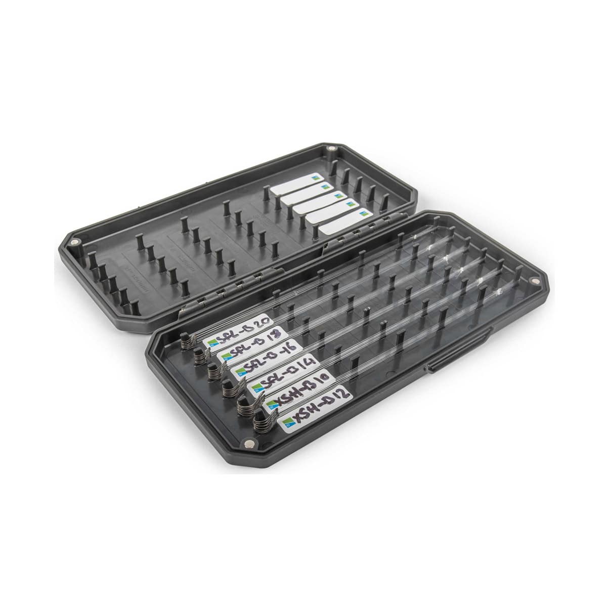 PRESTON ABSOLUTE HOOKLENGTH BOX SHORT รจ la soluzione compatta per riporre i terminali piรน corti. I perni interni sono posizionati a varie distanze per consentire di stoccare terminali da 2″(5cm) a 6″(15cm), perfetti per le moderne tecniche di pesca.ย Dimensioniย 80 x 32 x 20 mm.