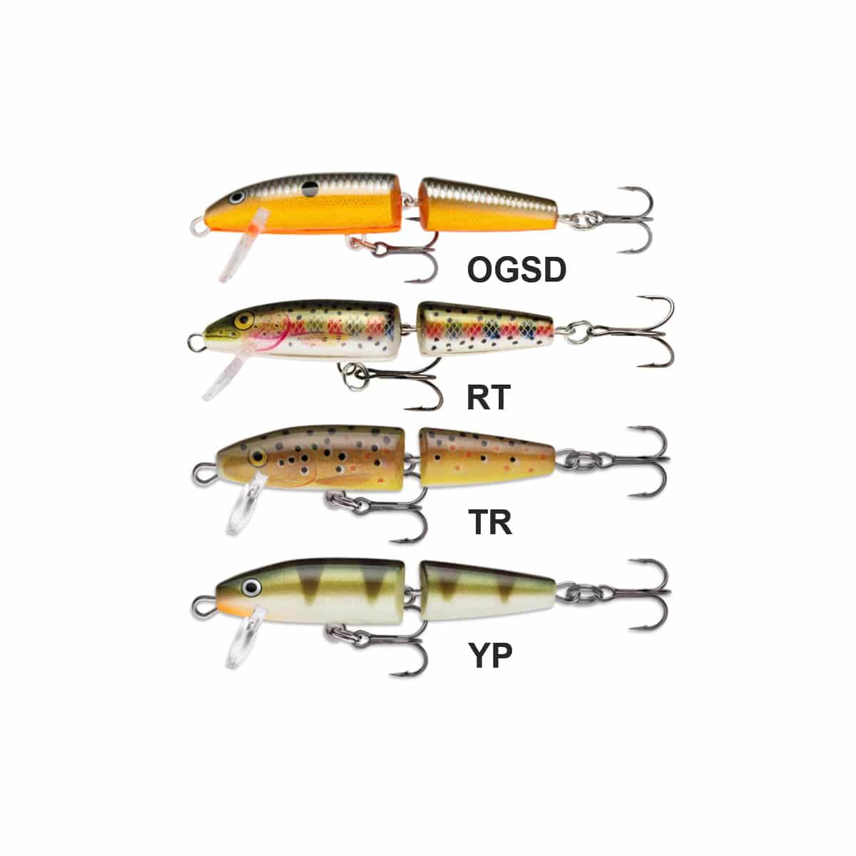 RAPALA JOINTEDย รจ un minnow snodato galleggiante prodotto in varie taglie che ha fatto la storia della pesca a spinning. Si tratta di un classico minnow “tagliato” ad un terzo dalla coda in modo tale da creare uno snodo che lo rende davvero micidiale verso una lunga serie di predatori. RAPALA JOINTED 09 (90mm/7g) รจ costruito in legno di balsa ed armato con ancorette VMC nichelate nere misura #5. Raggiunge la profonditร massima di nuoto tra i 150 ed i 210 centimetri. Ogni esca RAPALA รจ completata a mano e provata in vasca.