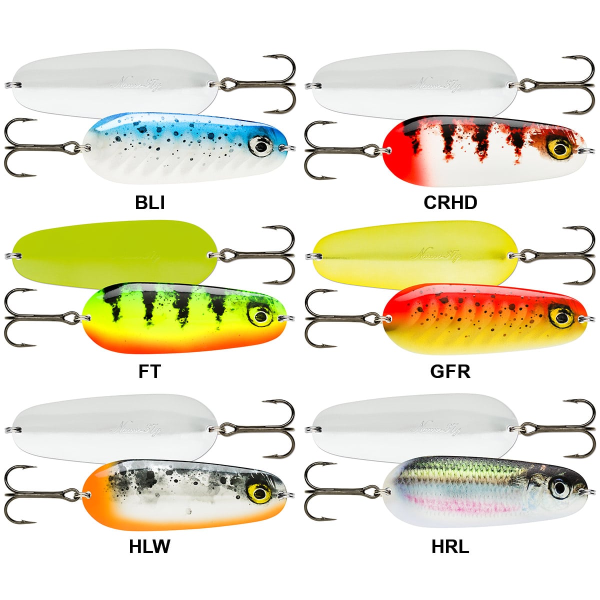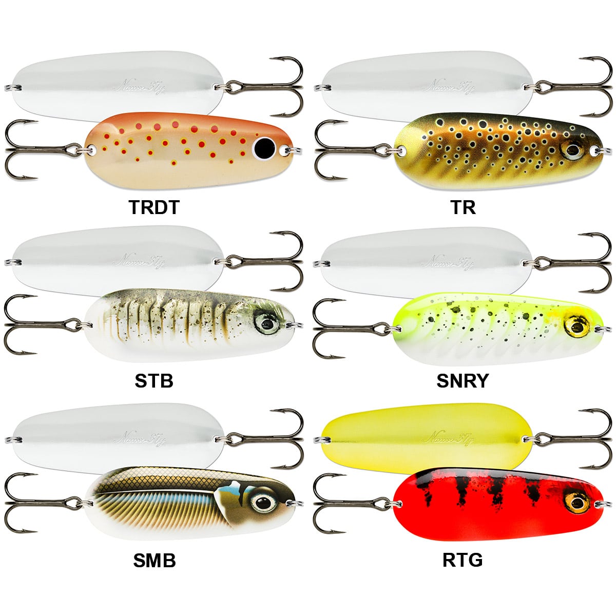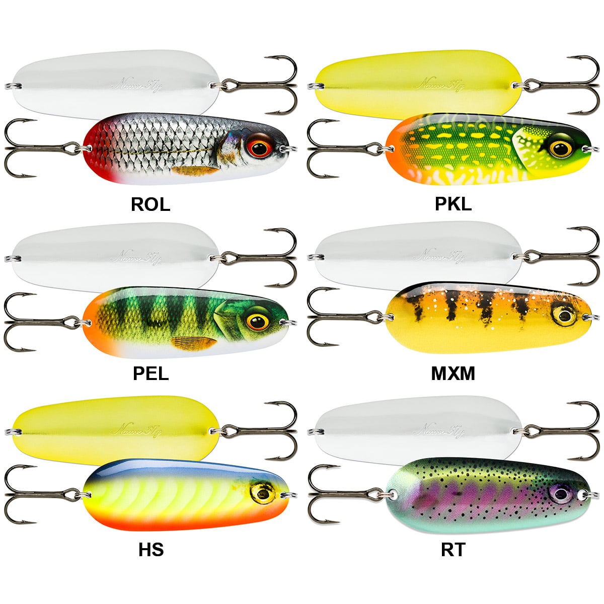 RAPALA NAUVO è un ondulante con un’azione scodinzolante ampia e realistica su un recupero costante, mentre un recupero più veloce aggiunge guizzi irregolari all’azione, rompendo il ritmo e aggiungendo flash. L’azione sfarfallante in caduta aggiunge ulteriore attrazione. Le finiture moderne combinano, i colori dei cucchiai tradizionali con i modelli realistici e moderni in HD. RAPALA NAUVO 19G (6.6cm/19g) è equipaggiato con un’ancoretta VMC misura #4.