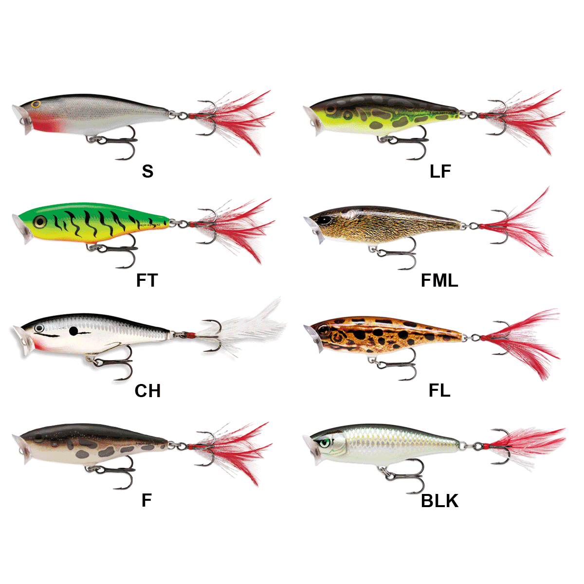 RAPALA SKITTER POP รจ un popper galleggiante ormai sul mercato da molti anni ma che risulta ancora molto catturante. Costruito in legno di balsa, ha la coppa in ABS ed รจ in grado di emettere dei POP fragorosi. Recuperato a strappetti ha un azione walk the dog. RAPALA SKITTER POP 50 (5cm/5g) รจ sviluppato per nuotare in superficie ed armato con due ancorette VMC nichelate nere misura #6 con dressing in coda. Testato e modificato a mano per funzionare perfettamente in qualsiasi condizione.