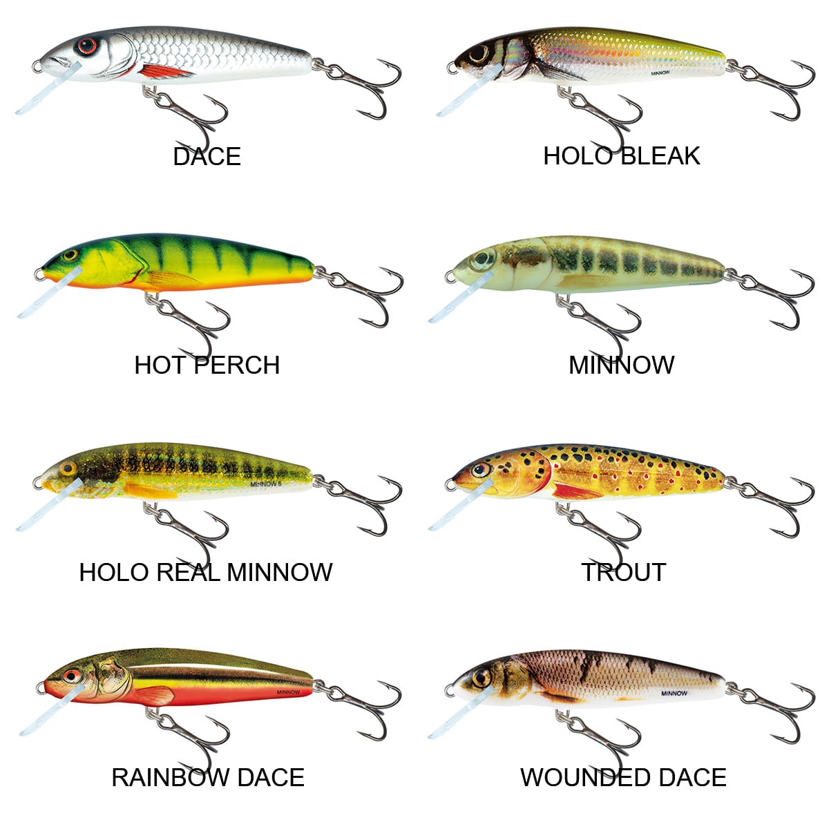 SALMO MINNOW a dispetto del fatto che sia una delle esche più vecchie della famiglia Salmo, molti angler considerano tuttora questo artificiale classico come una grandissima opzione. E’ caratterizzato da un’azione abbastanza stretta e ad elevata frequenza, un artificiale universale che può essere utilizzato in molti modi per adattarsi alle vostre preferenze. Ideale per catturare tutti i predatori, in tutti i tipi di ambienti, il MINNOW è disponibile in versione galleggiante e affondante. SALMO MINNOW 5S (5cm/5g) è affondante e nuota tra gli 80 e i 150 centimetri di profondità ; è equipaggiato con due ancorette brunite misura #12. Varie colorazioni disponibili.