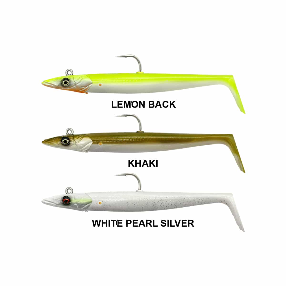 SAVAGE GEAR SANDEEL V2 รจ una soft swimbait allungata, imitazione di anguilla, dotata di amo #3/0 che fuoriesce sulla schierna dall’azione vivace sia in caduta che durante il recupero. La coda siliconica (lunga 95 cm) รจ in PVC morbido ed รจ pre montata sulla testa e fermata tramite un pezzetto di stecchino da denti. SAVAGE GEAR SANDEEL V2 12 (120mm/22g) nella parte della coda ha inserito un rattle in vetro che puรฒ essere tolto.