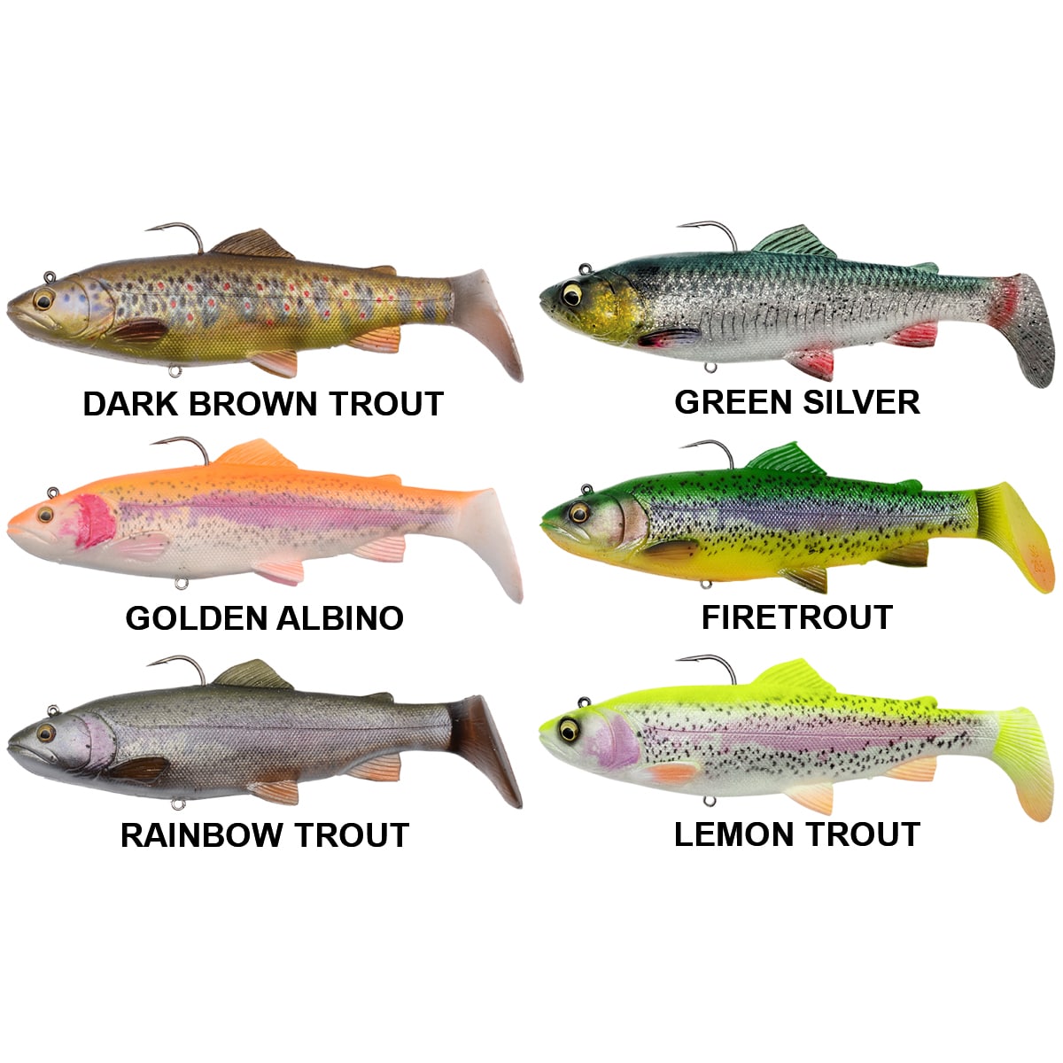 SAVAGE GEAR 4D TROUT RATTLE SHAD è una soft swimbait a forma di trota con coda paddle. Particolare la texture di ogni colorazione che è stata progettata e realizzata con il metodo 4D Photo Chrome Skin Print. Incredibilmente dettagliata e realistica. La mescola è impregnata dello Strike Triggering Scent. Nella coda è presente un alloggio nel quale è inserito un rattle. SAVAGE GEAR 4D TROUT RATTLE SHAD 17 (170mm/80g) è equipaggiata con amo X-Strong J e ancoretta #2.