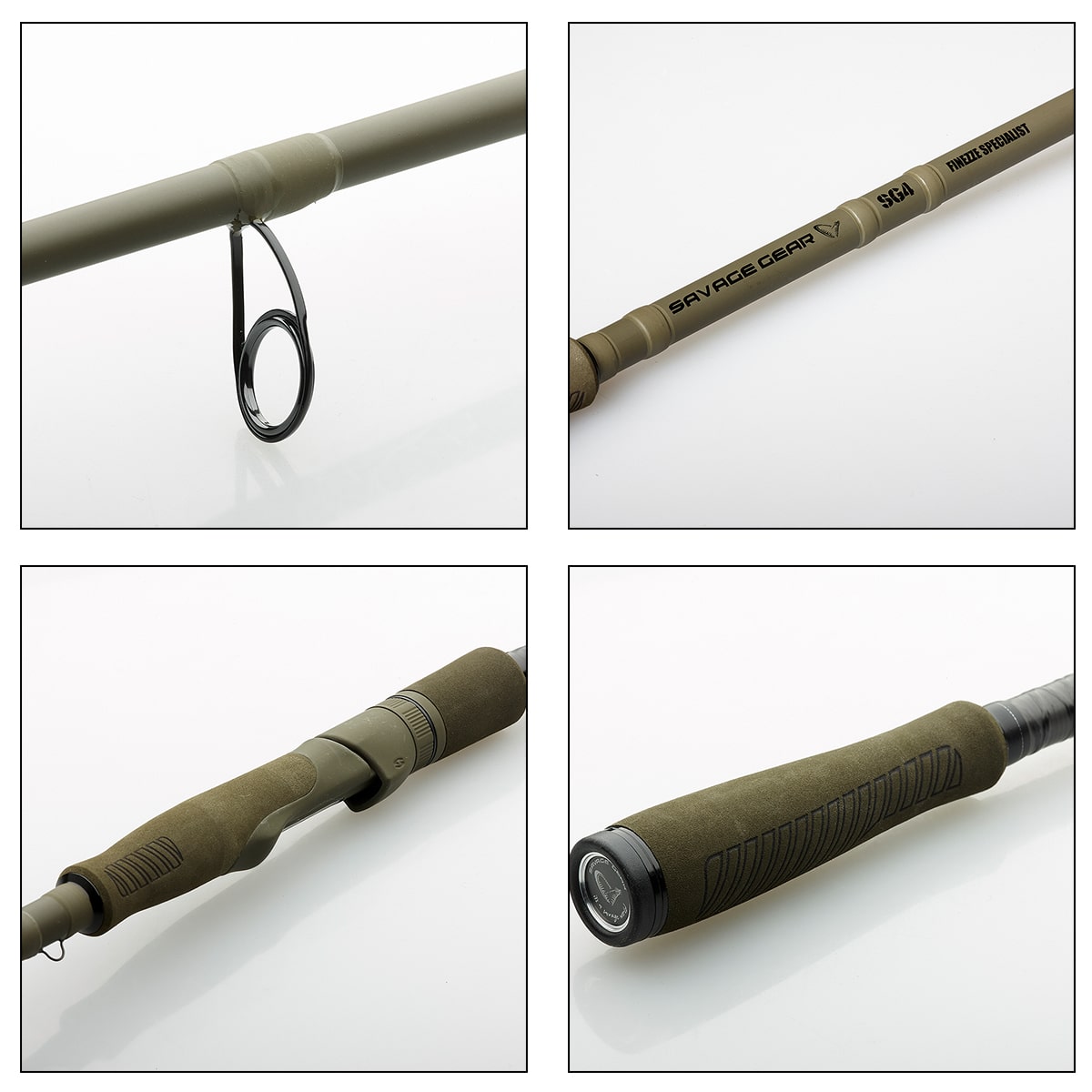 SAVAGE GEAR SG4 FINEZZE SPECIALIST รจ una canna da spinning specifica progettata per pescare con esche piccole e fili sottili. Sebbene la sensibilitร sia il piรน rande punto di forza di queste canne, hanno anche un sacco di spina dorsale per assicurare di non perdere il pesce durante il combattimento. Il grezzo รจ costruito in carbonio giapponese Toray 30T e monta componentistica SeaGuide (anelli CCS con ponte in acciaio inox e pietra in SIN e placca Alien Lock) con manico in EVA. La particolaritร di questa serie รจ il colore verde mimetico del grezzo, dell’impugnatura in EVA e della placca porta mulinello. Canna fornita con custodia in tessuto.