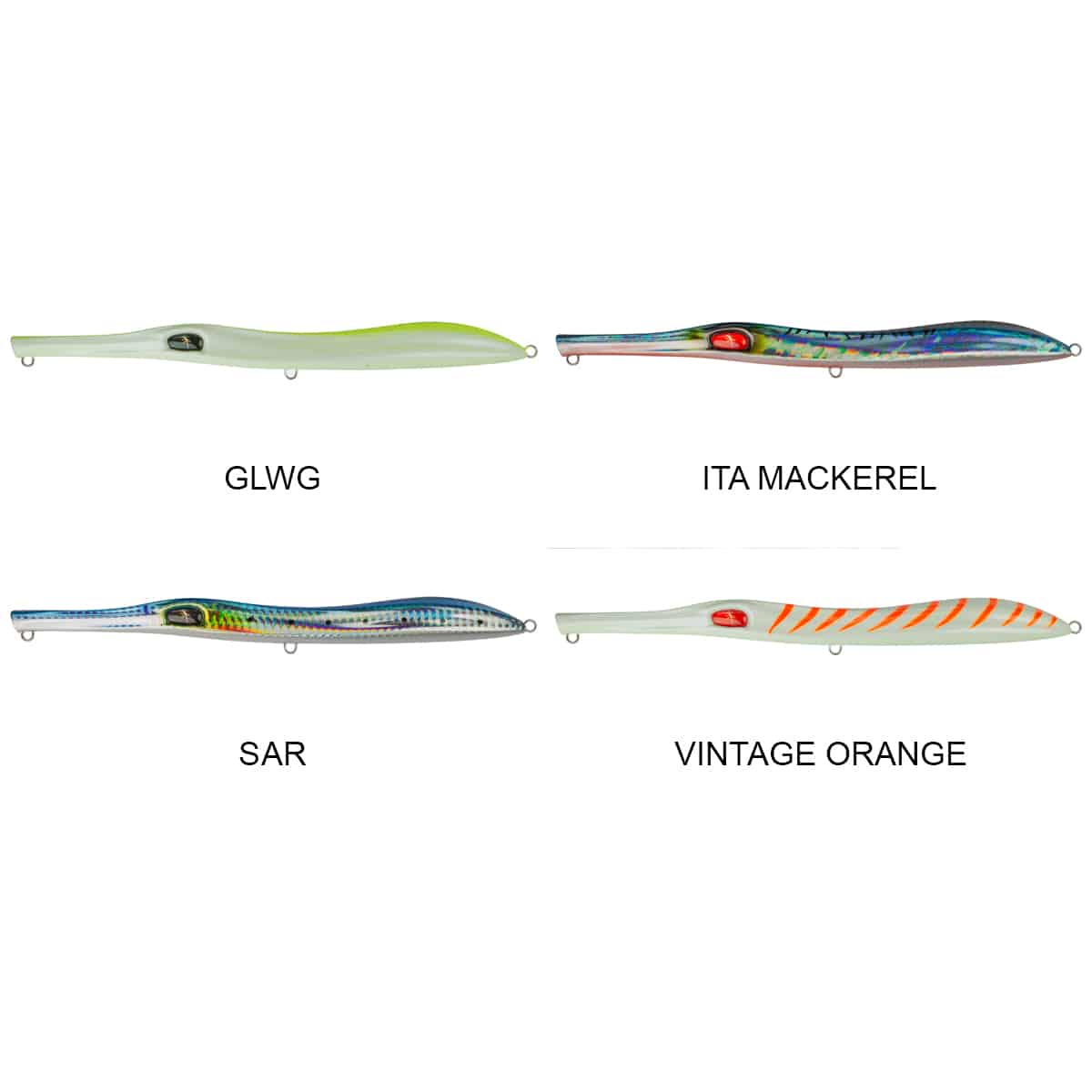 SEASPIN BALOSSO 210 รจ un needle galleggiante pensato e sviluppato in modo che permettesse un recupero molto versatile ma ancor piรน performante nel momento in cui si effettuano le tipologie di recupero che in questi anni si sono dimostrate piรน catturanti nei confronti delle specie target tipiche di questa esca: pesci serra e lecce. Estremamente efficace quindi sia su pesci tendenzialmente apatici, in particolare durante il periodo invernale, eseguendo recuperi lineari lenti o con un leggero ma ampio wtd, e sia su pesci piรน attivi con un recupero wtd piรน veloce e piรน stretto, fino a farlo letteralmente saltellare sulla superficie con un recupero velocissimo per simulare i pesci in fuga e in particolare le aguglie a cui assomiglia. La sua forma molto aerodinamica, associata ad un peso di ben 34 g, permette lanci lunghissimi. Dotato di armatura passante e ancorette BKK 4x strong break round treble hook misura #2. Dedicato principalmente al pesce serra e alla leccia ha dato grandi risultati nei nostri test anche su barracuda e spigole ma ha un chiaro potenziale su tutte le specie che effettuano attacchi a galla. Varie colorazioni disponibili.