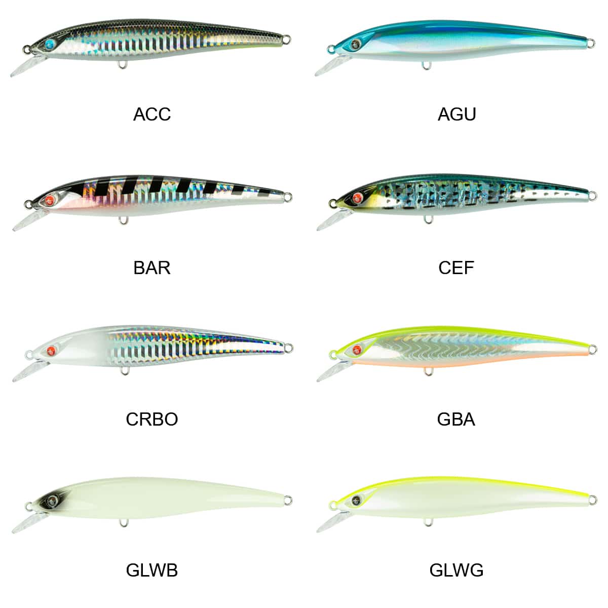 SEASPIN EJA 115 SF mantiene molte caratteristiche tecniche della serie ma con una efficienza e una facilità di nuoto che lo fanno apprezzare molto già dal primo utilizzo. Particolarmente funzionale per la pesca alla spigola ma è ugualmente adatto ad insidiare tutti i predatori marini di media taglia sia per il suo peso, perfettamente compatibile con la classica canna all round da mare, ad esempio la Labrax, e sia per le sue dimensioni che lo fanno il classico “bocconcino” a cui i predatori non sanno rinunciare. Utilizza ancorette BKK 4x strong break round treble misura #4.