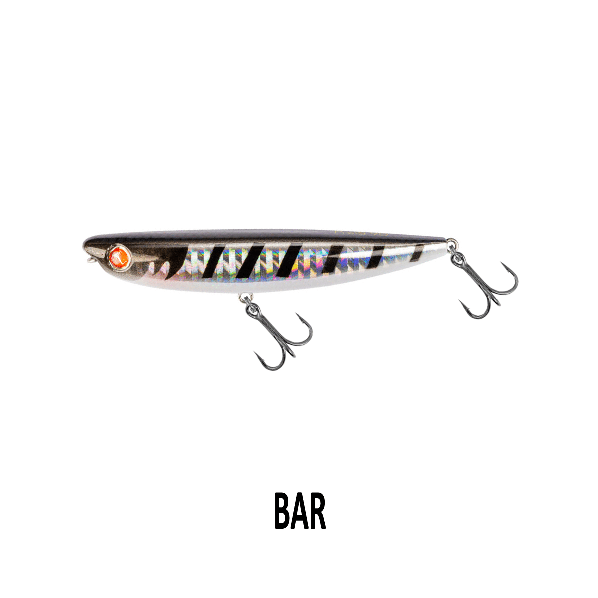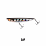 SEASPIN PRO-Q 90 è un walking the dog molto facile da usare, che forma curve strette e rapide se recuperato normalmente rispondendo molto prontamente alle sollecitazione del pescatore, mentre crea curve molto larghe se recuperato lentamente. Oltre al movimento laterale si distingue anche per un particolare movimento alto-basso molto stimolante nei confronti dei predatori. Quest’ultimo movimento può essere favorito, o annullato, dall’azione del pescatore ed è comunque un’arma in più che distingue il Pro-Q. dagli altri modelli di WTD in commercio. L’attenta distribuzione dei pesi e il profilo appositamente studiato permettono lanci molto lunghi, inusuali per questa categoria di artificiali. Il rattling è piuttosto sordo e prodotto dalle sfere interne parzialmente libere di muoversi. Per i colori si spazia dai naturali al trasparente, al glow. Non mancano anche qui armatura intera passante e le ancorette rinforzate. Indicato per tutti i predatori che attaccano in superficie come spigole, pesci serra, barracuda, lecce e lampughe.