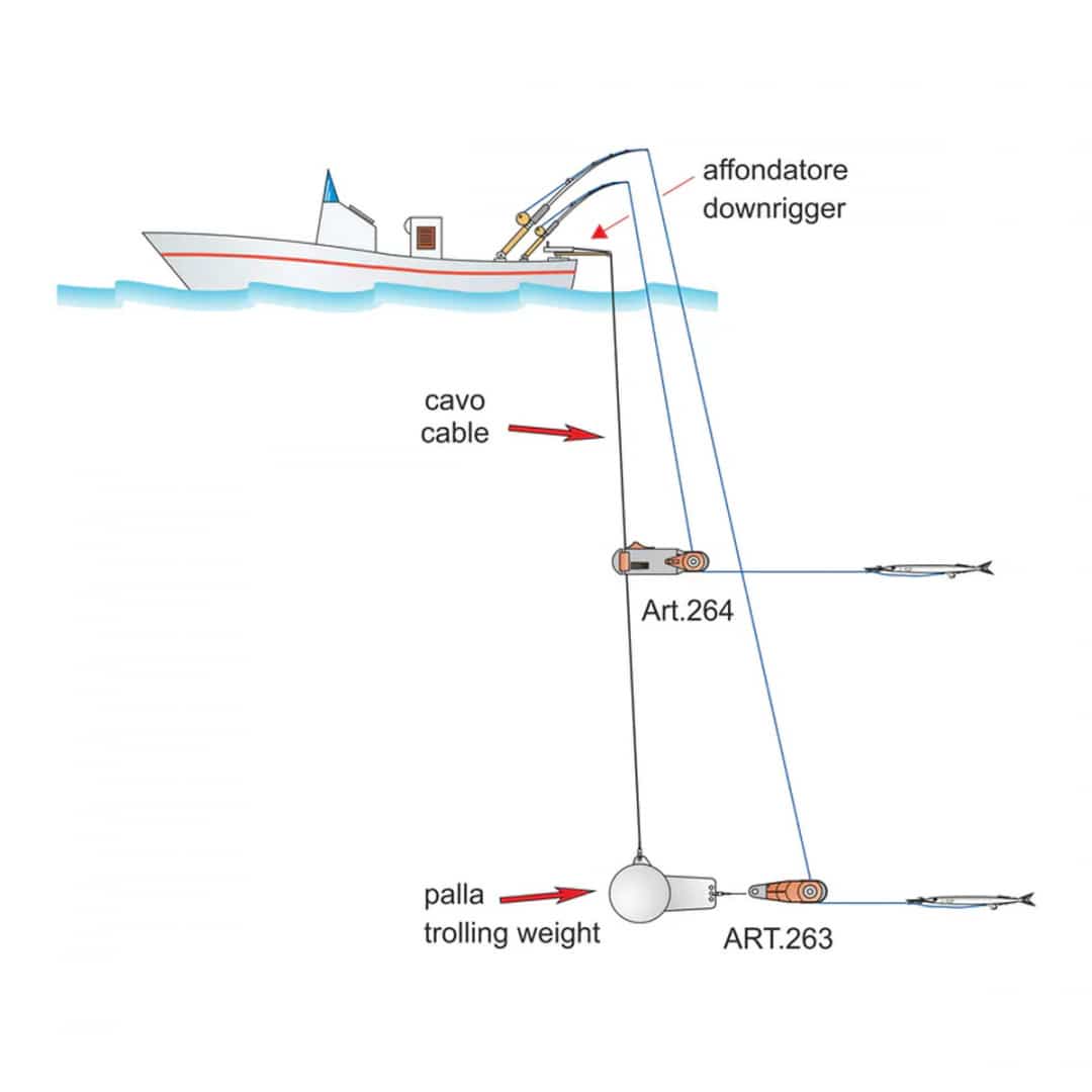 Pinza di Sgancio Stonfo della lenza per la pesca a traina con affondatore. Dotata di pomello di regolazione della pressione di serraggio del filo e di un esclusivo dispositivo a levetta per lโaggancio-sgancio rapido della lenza che permette di aprire o chiudere la pinza senza dover regolare nuovamente la pressione di serraggio.