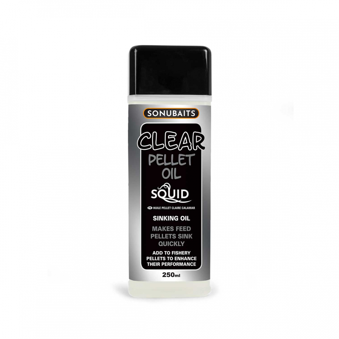 SONUBAITS CLEAR PELLET OILS sono da aggiungere alle pellet per aumentarne le prestazioni. Rende le pellet affondanti. Prolunga la stabilità di scioglimento in acqua. Disponibile in sei gusti (Chocolate Orange, F1, Krill, Salmon, Scopex, Squid).