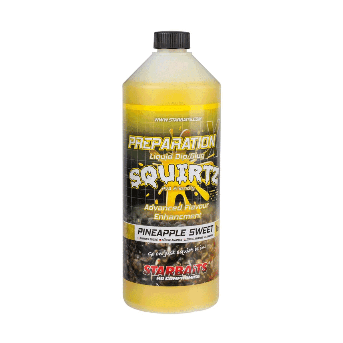 STARBAITS PREP X SQUIRTZ fa parte della linea PREPARATION X e comprende una selezione di ingredienti e aromi che permettono di aumentare la potenza attrattiva di tutte le esche che si vogliono usare! La formulazione di alcuni ingredienti ‘segreti’ permetterà di aumentare la stimolazione del cibo e l’interesse del pesce nella zona pasturata! Possono essere usati per sostituire l’acqua di bagnatura dei mix-stik, pellets, il method o qualsiasi tipo di pastura… come liquido di ammollo per le boilies o esche artificiali… ‘PVA friendly’ cioè compatibile con i sacchetti solubili, si può anche utilizzare direttamente nei sacchetti solubili!