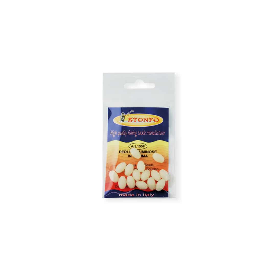 STONFO PERLINE LUMINOSE IN GOMMA sono disponibili in cinque misure. Confezione da 15 pezzi.ย