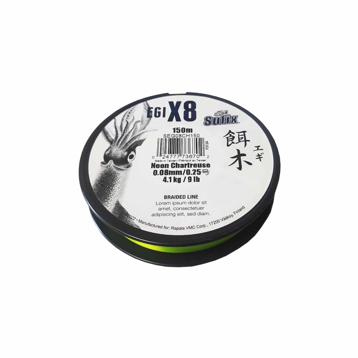 SUFIX EGI X8 รจ un trecciato a 8 capi sviluppato per la pesca dei cefalopodi. Realizzato con la tecnologia R8 Precision Braiding, che si traduce in una treccia rotonda con un notevole rapporto resistenza/diametro. Composto da 8 fibre UHMPE Izanas per la massima rotonditร possibile permette lanci lunghi e precisi mantenendo comunque un’elevata resistenza all’abrasione. Colore Neon Chartreuse. Bobina da 150 metri. Vari diametri disponibili.