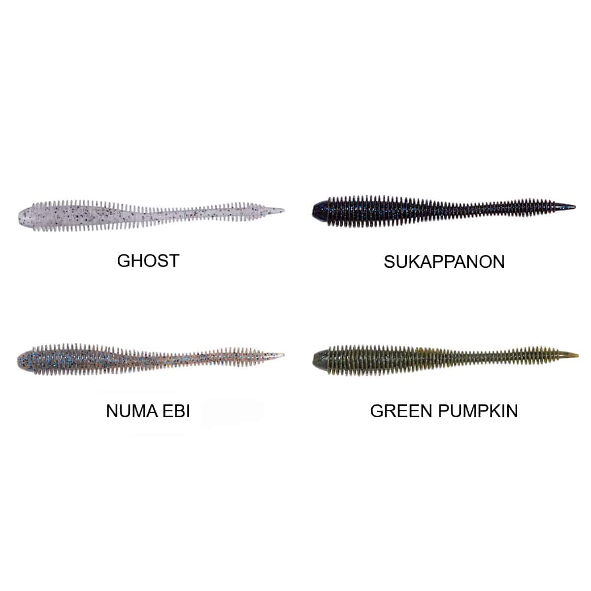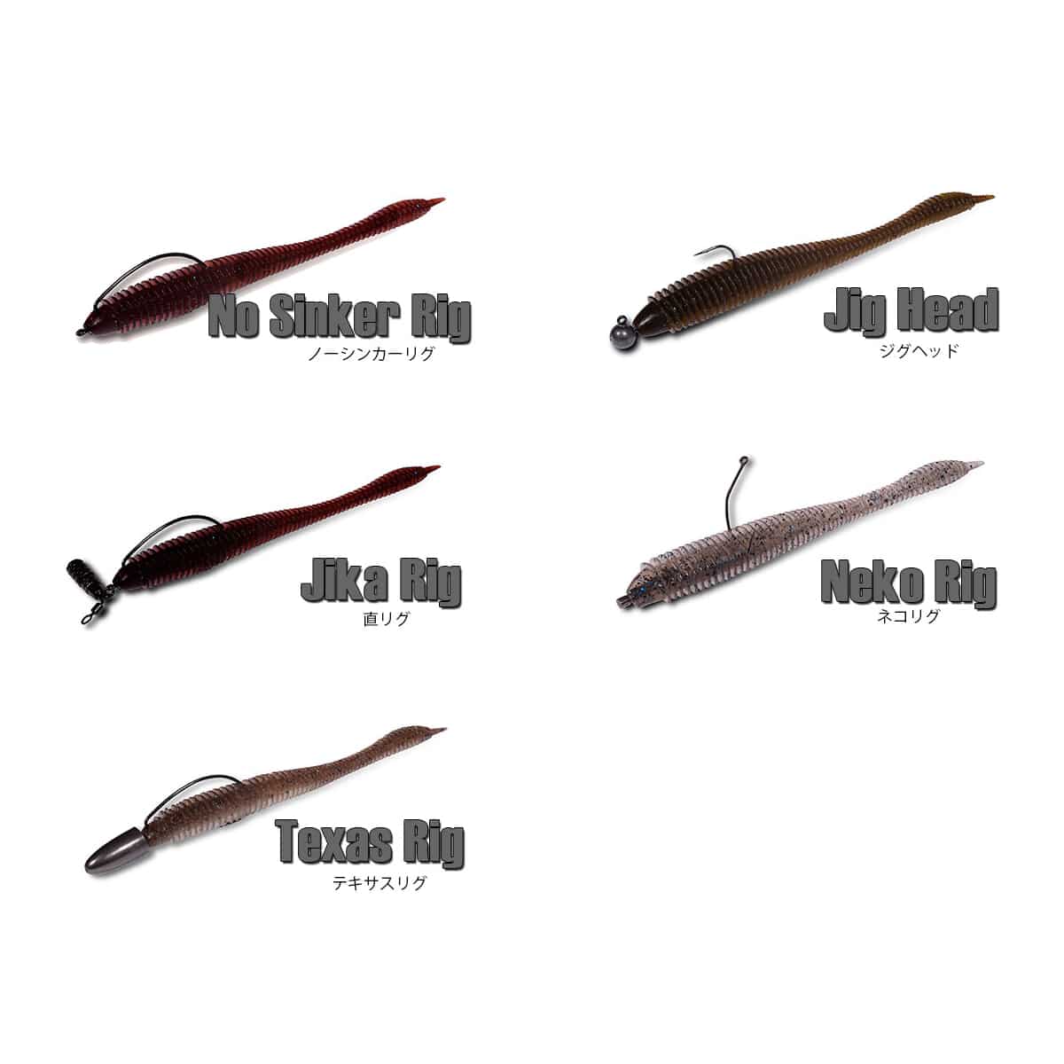 SUNNY BROS DRUG STICK รจ un soft worm la cui principale caratteristica รจ l’azione BUBBLE creata dal rilascio delle bollicine d’aria da parte delle costine da cui รจ composto tutto il corpo che non รจ circolare ma ovale in considerazione dell’efficienza dell’allamata. Rendendolo ovale รจ possibile sfruttare la velocitร di caduta anche orizzontalmente (il lato largo รจ in basso) e verticalmente (il lato stretto รจ in basso). Quando cade, la coda cattura molta acqua e riproduce il leggero movimento sinuoso del nuoto dei piccoli pesci. ร un worm che รจ davvero una caramellina per il Bass, con la quantitร di sale, lo scent al gambero, le bollicine emesse e le leggere vibrazioni. Si presta bene a molteplici inneschi come: Neko Rig, No Sinker Rig, Jig Head, Texas Rig, Jika Rig. SUNNY BROS DRUG STICK 4.7″ (11.9cm) puรฒ essere innescato con efficacia con un amo wide gap misura 1/0 o 2/0. Varie colorazioni disponibili.