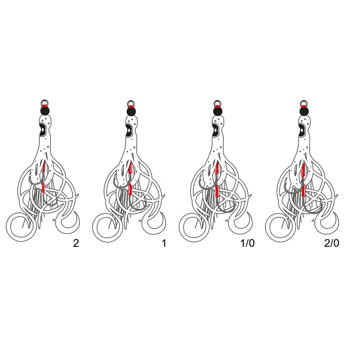 VMC 6139O OCTO+ RIG รจ un doppio assist per kabura e tai rubber. Assemblato con un cordino da 100lb su quale viene montato del Tinsel UV, code curly in silicone, perle e polpetto fluo con ami VMC 6139. Finitura Tin. Varie misure disponibili.