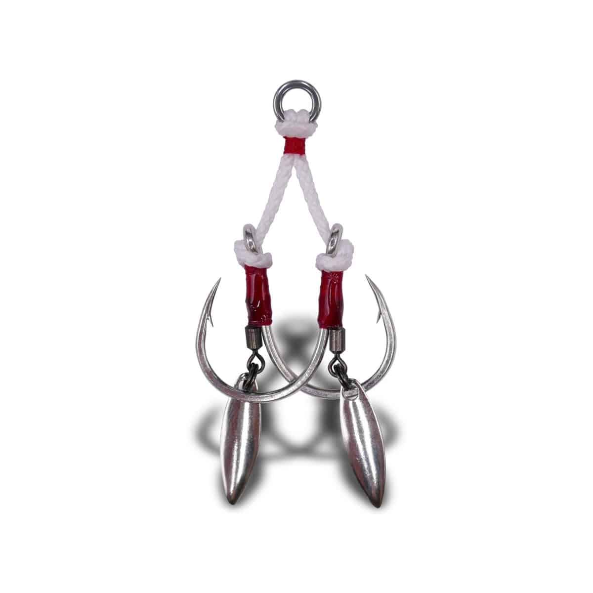 VMC 7264AB SLOW BLADE ASSIST è un assist hook doppio molto particolare infatti insieme è stata legata una girellina sulla quale è inserita una palettina willow che non da noia al movimento del jig ma aumenta i flash e quindi l’attrattività dell’esca. La treccia cava presenta un’anima di fluorocarbon per una presentazione perfetta. L’amo utilizzato è un VMC 7264AB dal filo molto robusto e con la pancia molto larga, ideale nella pesca in verticale con i metal jig. Finitura TI. Varie misure disponibili.