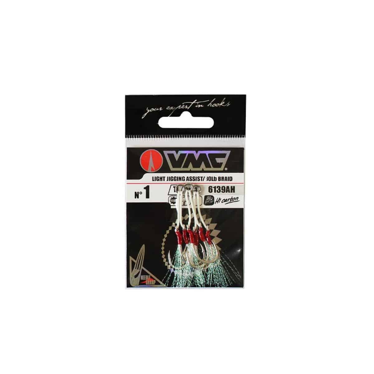 VMC LIGHT JIGGING ASSIST 6139AH è un assist hook doppio sviluppato per il light jigging ideale se utilizzato sui casting jig. E’ assemblato con ami VMC, braid con anima in fluorocarbon e reso adescante dal crystal flash UV in fase di legatura. Finitura titanio. Varie misure disponibili.