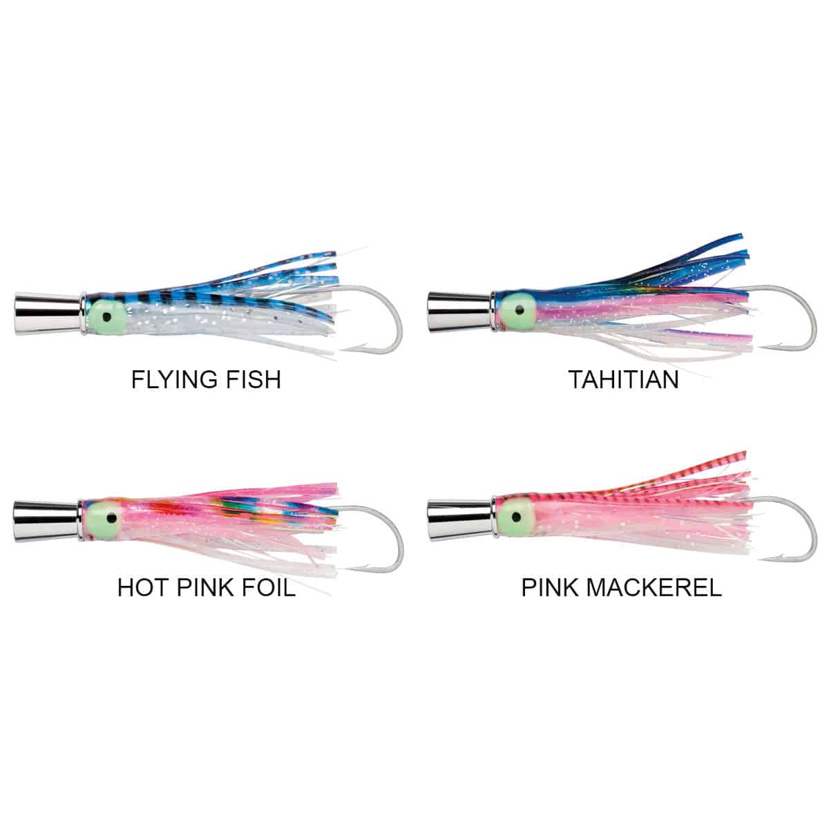 WILLIAMSON DINGO METAL JET รจ costrutio con un disegno concavo della parte frontale e una lavorazione conica al contrario con fori per dare massima azione. La testa รจ in ottone lavorata cromata per aumentare l’effetto flash. Lo skirt di alta qualtiร รจ caratterizzato da colori brillanti con l’aggiunta di flashbou. Nella confezione รจ presente un finale con monofilo Sufix da 40lb ed un amo VMC Perma Steel. Varie colorazioni disponibili.
