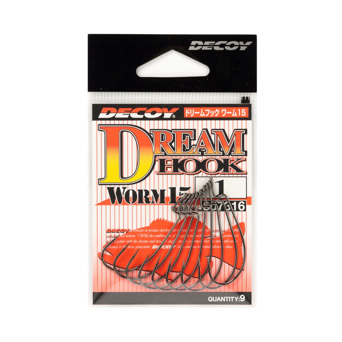 DECOY WORM 15 DREAM HOOK è un amo offset dal filo abbastanza sottile ma allo stesso tempo robusto. Nelle misure grandi è ideale per innescare worm e stickbait di 5-6″ mentre le misure piccole vanno bene per il finesse. Punta affilata chimicamente. Finitura nera. Made in Japan.